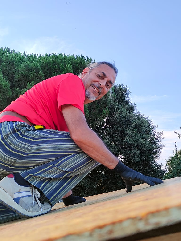 Bruno è insegnante di meditazione e Reiki, con un passato nel marketing. Ha una manualità straordinaria: molte delle strutture presenti in azienda sono state progettate e costruite da lui, e altre nasceranno per l’agricampeggio.